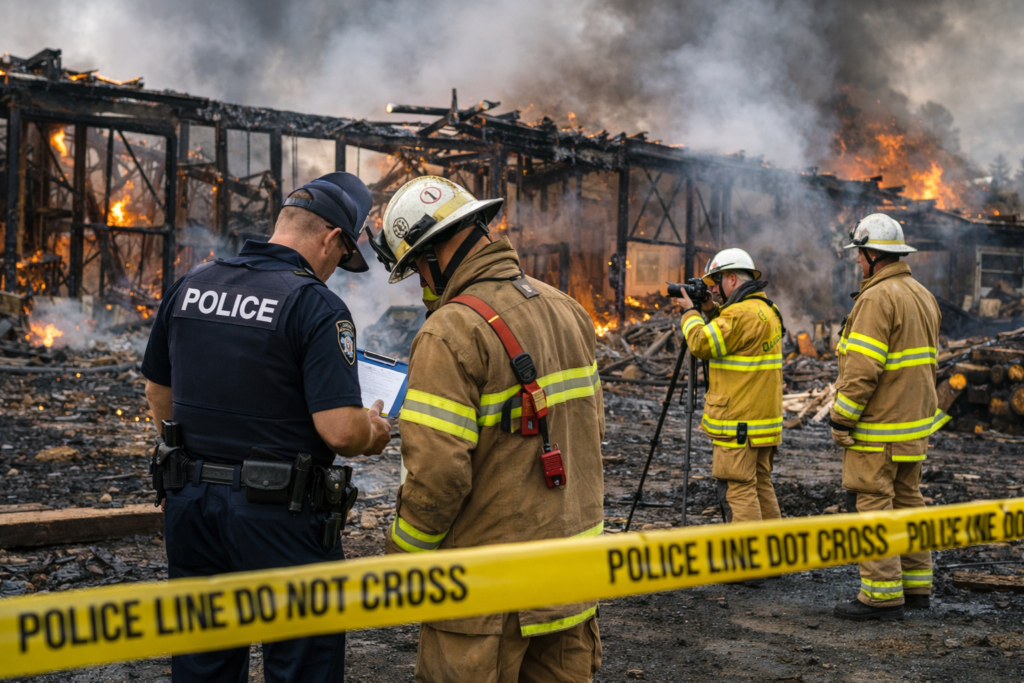 警察と消防は、2026年3月23日午前9時から実況見分を行い、出火元とみられる製材所を中心に詳しい調査を進めています。
